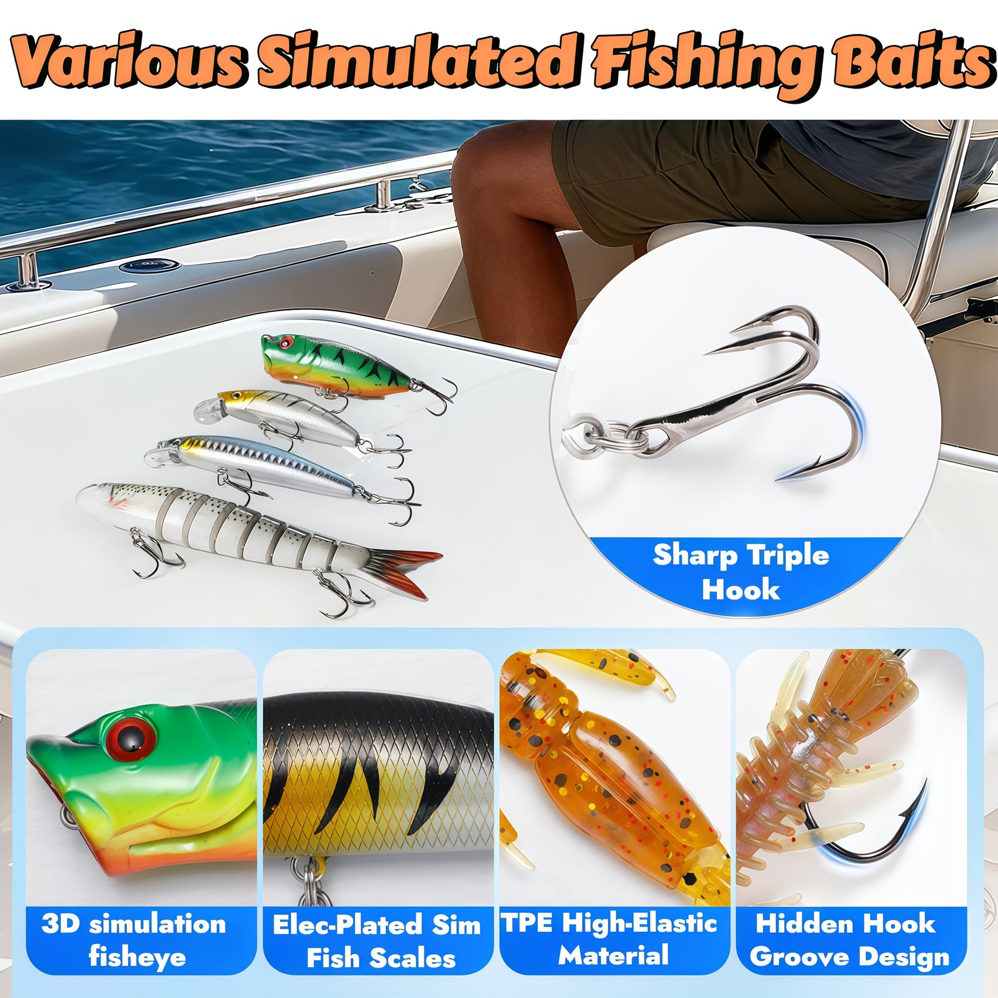 - Enjoy an all-in-one kit that covers hard and soft baits, hooks, sinkers, and essential tools, so you can fish confidently without buying extras.