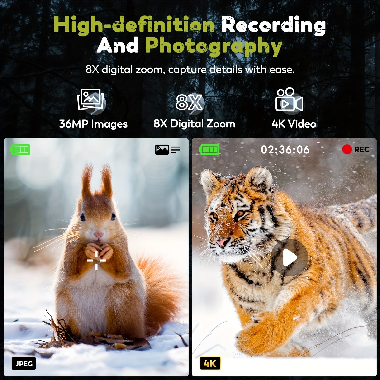 Ginost 4K Night Vision Binoculars With 8x Digital Zoom deliver 4K video and 36 MP photos with true-to-detail zoom, so you can witness distant wildlife in stunning clarity.
