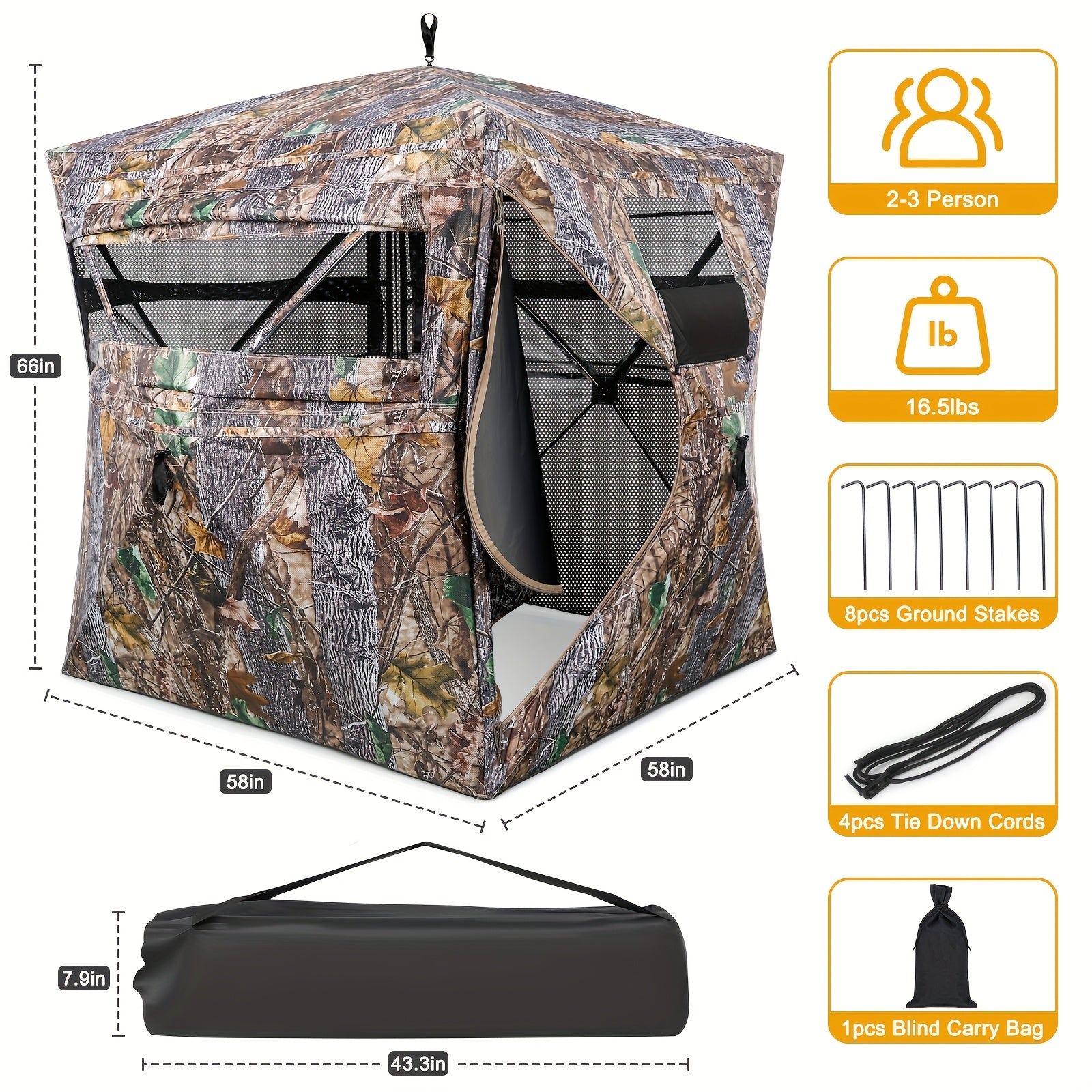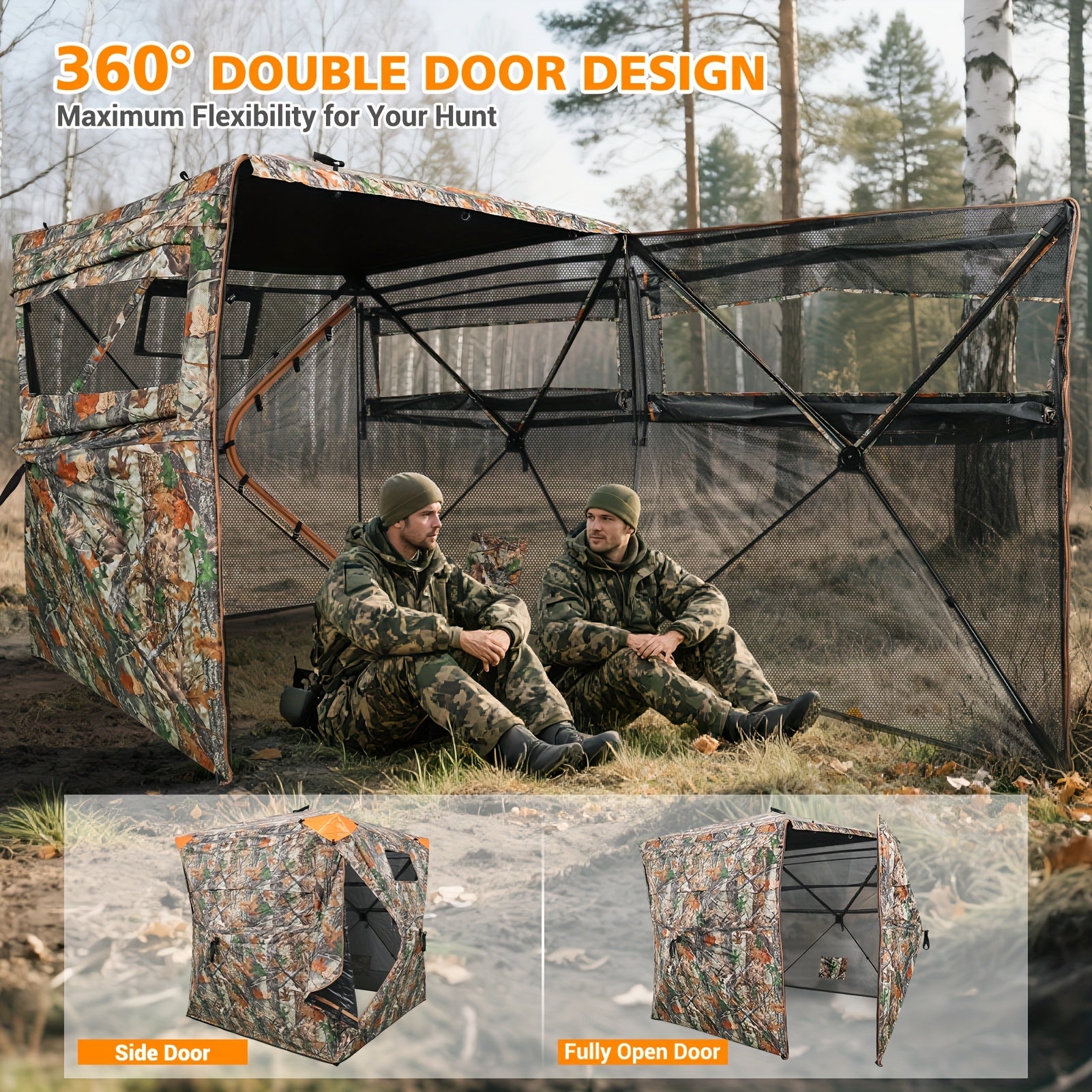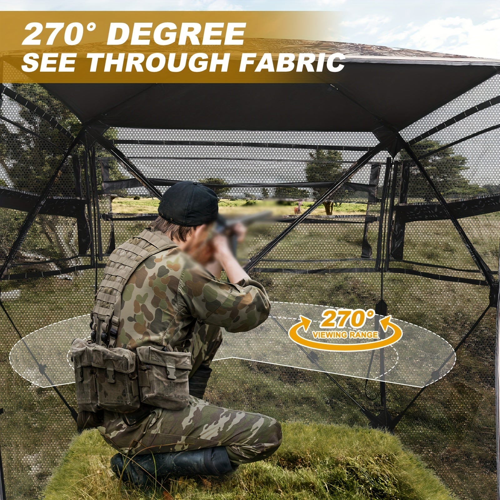 - See-through PE fabric windows give you wide-angle visibility while you stay concealed, helping you monitor approach, wind, and movement.