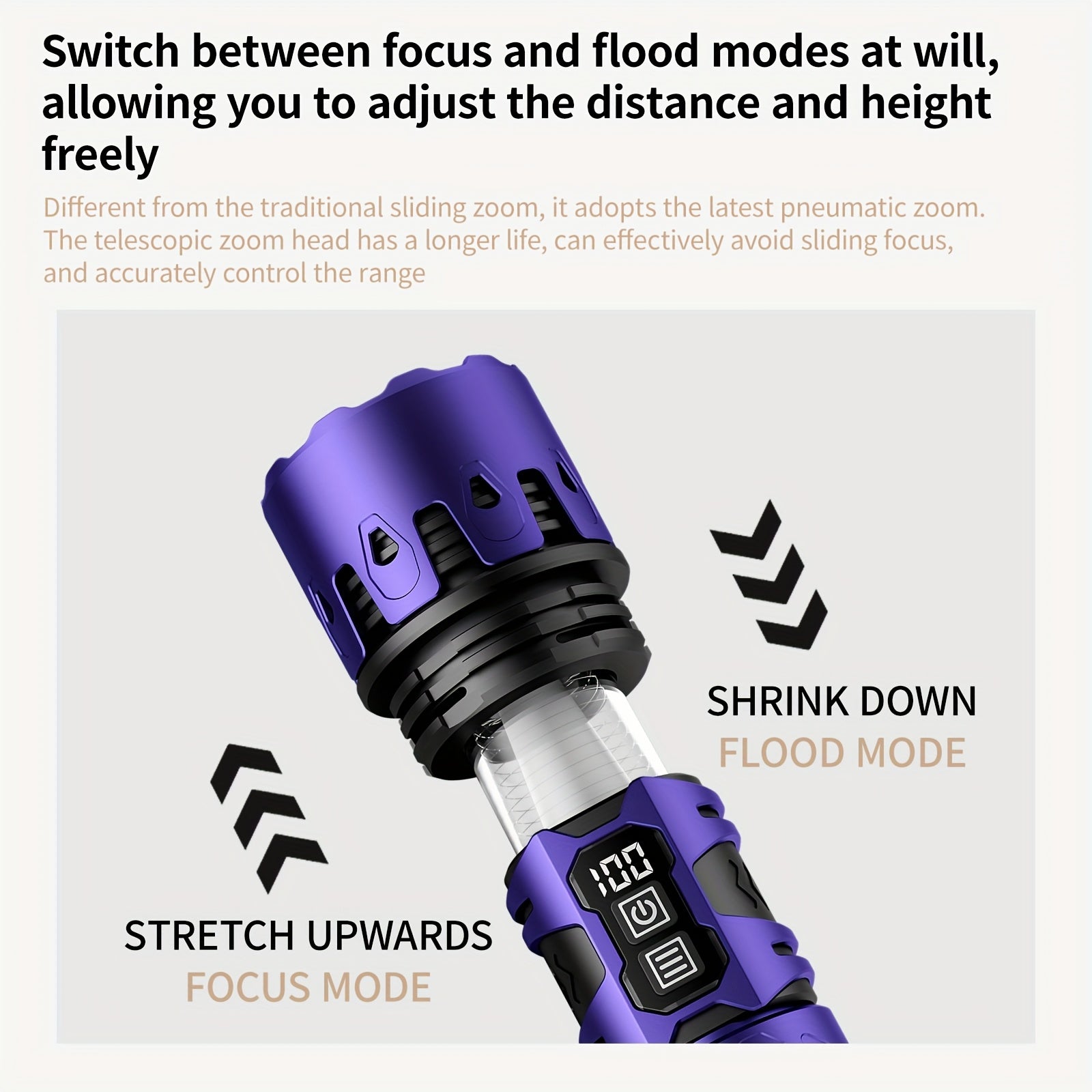 - Versatile beam and color: Zoomable purple aluminum alloy flashlight that switches from a precise spotlight to a broad flood for any task.